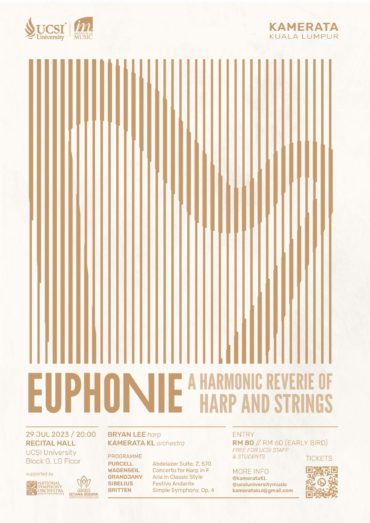 Join us as we present an evening of harmonic reverie, presented to you by UCSI Institute of Music and Kamerata Kuala Lumpur, featuring Malaysian harpist Bryan Lee, performing Wagenseil’s Harp Concerto and Grandjany’s Aria in Classic Style with the ensemble.