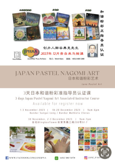– Upon completion of this course, you will receive a certificate from Mr Norikatsu Hosoya, the founder of Japan Pastel Hope Art Association (JPHAA). Once certified as an Associated Instructor, you may conduct Nagomi Art workshops and share the happiness and beauty of PNA around to more people.