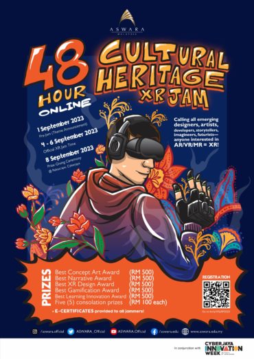 The 48 Hour Cultural Heritage XR Jam (48HXRJAM) is an innovation challenge in the style of an ideathon in-conjunction with Cyberjaya Innovation Week, aimed at presenting creative ideas to enhance awareness of Malaysian culture and heritage. The objective of this program is to nurture the talents of individuals, students, and creative practitioners interested in the potential of Extended Reality (XR) development, which includes Augmented Reality (AR), Virtual Reality (VR), or Mixed Reality (MR), to foster an appreciation for Malaysian cultural heritage. This is achieved through the creation of a collaborative and interactive portfolio encompassing design ideas, art, and creative content technology.
