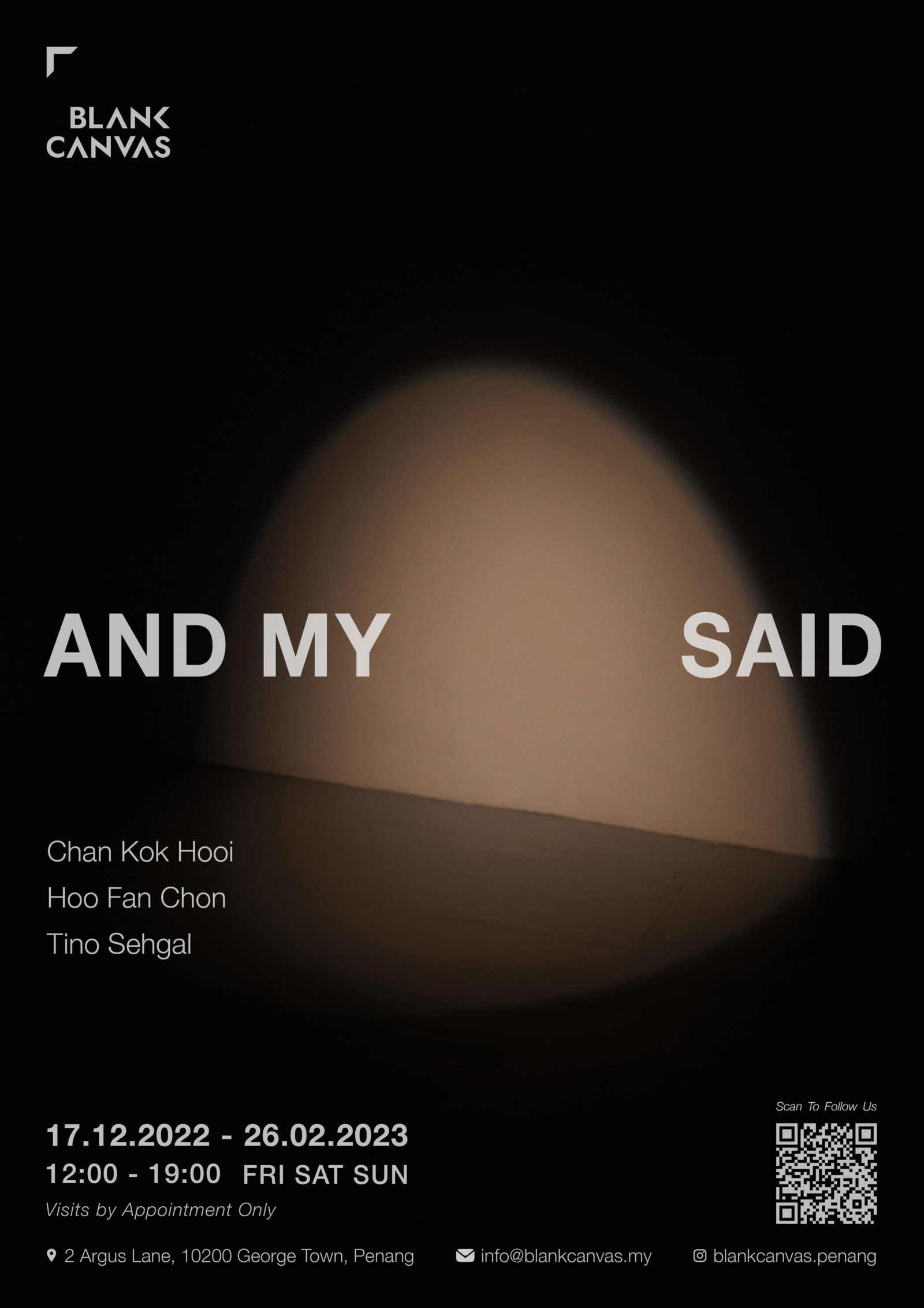 Blank Canvas is delighted to invite you to the opening of AND MY SAID, an exhibition featuring works by Chan Kok Hooi, Hoo Fan Chon & Tino Sehgal.