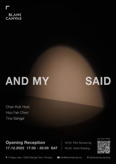 Blank Canvas is delighted to invite you to the opening of AND MY SAID, an exhibition featuring works by Chan Kok Hooi, Hoo Fan Chon & Tino Sehgal.