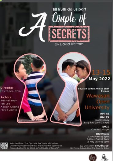 A COUPLE OF SECRETS deals with the warring consequences of marital infidelity portrayed in this adult-humoured comedy.