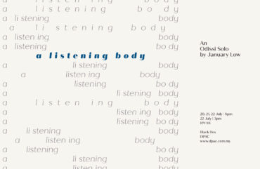 A listening body is a dance-theatre experience based on January’s thoughts and questions in and around Odissi. Informed by a practice that spans 30 years, and more recently empowered by a virtual mentorship with (Odissi exponent) Bijayini Satpathy, January has deepened her relationship with Odissi by actively listening and responding to her body, mind and environment. This work peels away the commodified and exoticised layers of Odissi to reveal a relationship that is personal, vulnerable and respectful, enabling agency for both audience and performer to be equal partners in the experience.