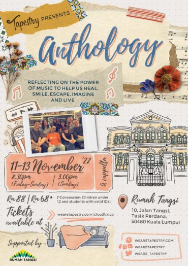 This November, Tapestry, a home-grown vocal group, will be presenting its latest music production, ANTHOLOGY. Playing from 11th till 13th November 2022 at the former Loke Chow Kit Mansion now known as Rumah Tangsi in Kuala Lumpur, ANTHOLOGY coincides with Tapestry’s 10th anniversary and also marks the group’s return to the stage post-pandemic.
