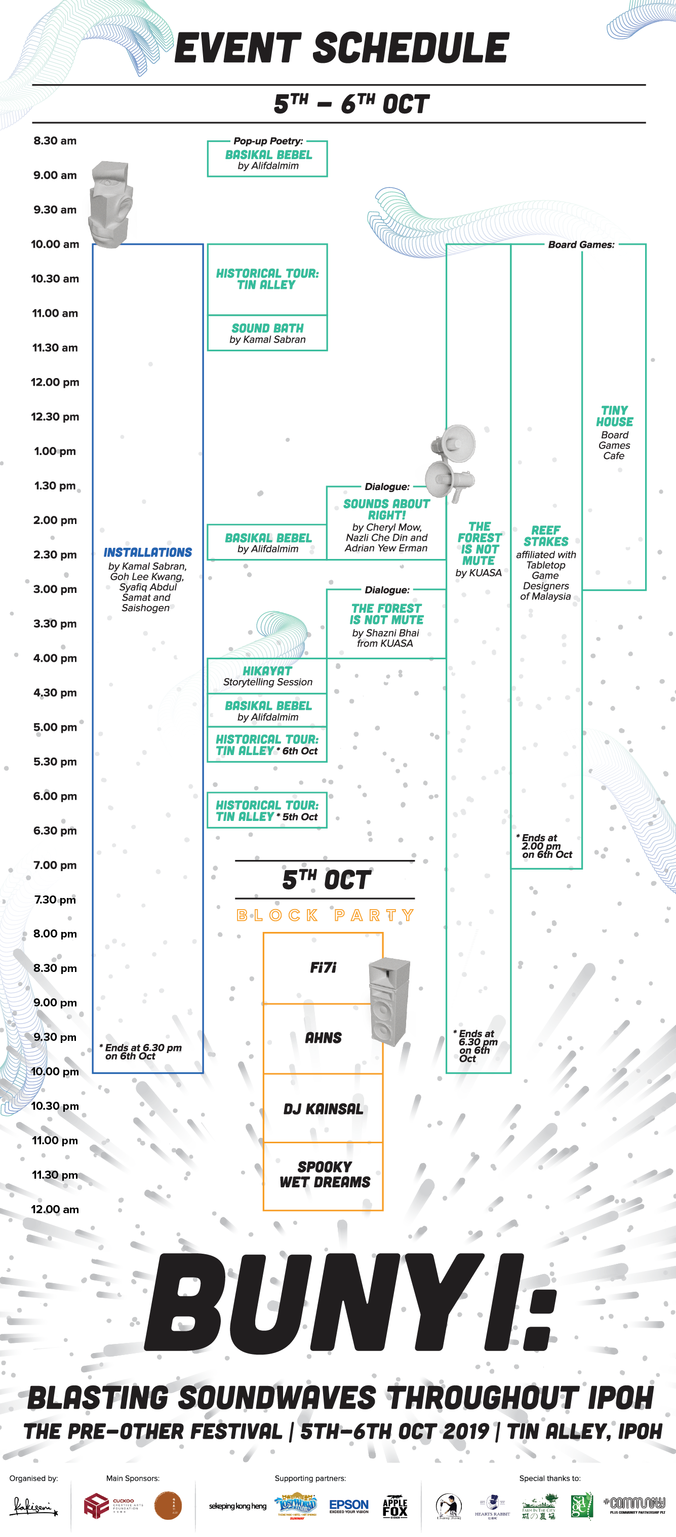 Lapangkan kalendar anda 5 dan 6 Oktober ini untuk BUNYI! Baca selanjutnnya untuk ketahui jadual aktiviti!