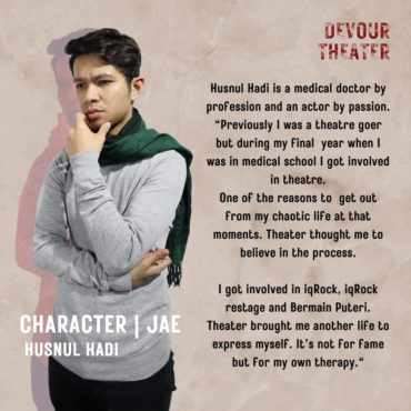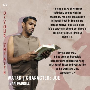 A bilingual theatre show. Kedarah/Devour is a story about post-global warming Earth. Dystopian world. Mankind lives in famine. Yet Joe always got to eat every day. He has access to knowledge and entertainment. Jae is taking care of Joe. Jae wants Joe to be an intelligent person, so Joe can lead mankind out of the mess. However, Jae has a secret. Joe doesn’t know about it. What is the secret?