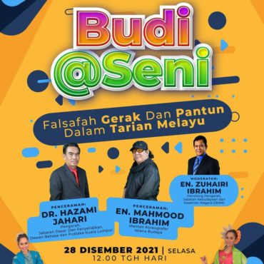 Saksikan siaran secara langsung Budi@Seni 2021 di Facebook Page Jabatan Kebudayaan dan Kesenian Negara @mysenibudaya pada 28 Disember 2021 (Selasa) pukul 12.00 tengah hari.