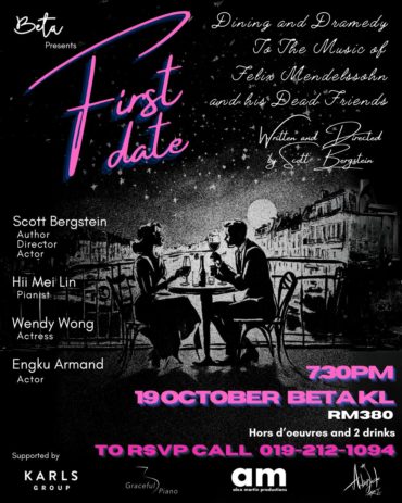 “First Date” will premiere on 19 October at 7:30pm. Tickets are RM380 and include hors d’oeuvres and two drinks. Reservations are limited and can be made at 019-212-1094.