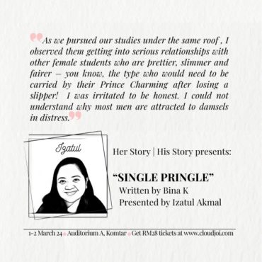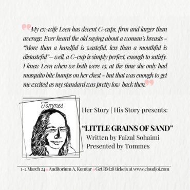 Fa Abdul & Big Nose Productions celebrate a belated Valentine’s Day with Her Story | His Story, a collection of SIX insightful monologues that explores human relationships from different perspectives.