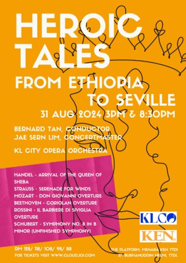 Tales of heroism have always inspired the listener to strive to greater heights; of the human spirit enduring and prevailing over the harshest of hard times. KL City Opera orchestra under the baton of conductor, Bernard Tan presents an evening of orchestral splendor spanning the Baroque to the Romantic eras. The concert opens with Handel’s lively “Arrival of the Queen of Sheba” from his oratorio “Solomon,” setting a joyous tone. Next, Mozart’s dramatic overture to “Don Giovanni” transitions from solemn chords to a lively allegro, embodying the opera’s themes of seduction and danger. Rossini’s overture to “The Barber of Seville” follows, with its infectious energy and wit. Richard Strauss’s “Symphony for Winds,” showcases his early genius with rich textures and engaging melodies. Beethoven’s powerful “Coriolan Overture” depicts the inner conflict of the Roman general Coriolanus, leading to Schubert’s “Unfinished Symphony,” a masterpiece of lyrical beauty and emotional complexity. Join us for a captivating orchestral journey of Heroic tales from Ethiopia to Seville.