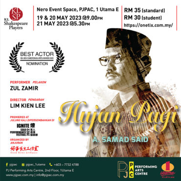 Performed entirely in the original Malay text, with surtitles in English, this adaptation is based on Malaysian National Laureate A. Samad Said’s novel “Hujan Pagi”. It is a solo play featuring Zul Zamir, who plays the roles of the two brothers Lokman and Lajis.