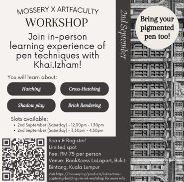 Dalam sesi workshop in, kita akan belajar dengan lebih mendalam tentang teknik-teknik Hatching, Cross-hatching, pattern batu bata dan penghasilan bayang-bayang dalam lukisan yang kita akan lukis bersama-sama nnt! S