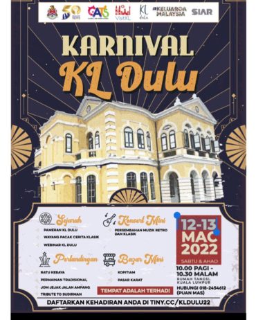 Sertai pelbagai program dan aktiviti di Karnival KL Dulu pada 12 hingga 13 Mac 2022 di Rumah Tangsi, Jalan Tangsi, Kuala Lumpur