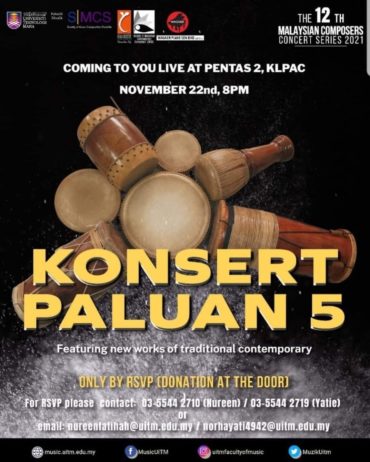 Saksikan Konsert Paluan Lima menampilkan Komposisi penciptaan lagu baharu dalam permainan bunyi-bunyian alat muzik tradisional dalam genre tradisional kontemporari.