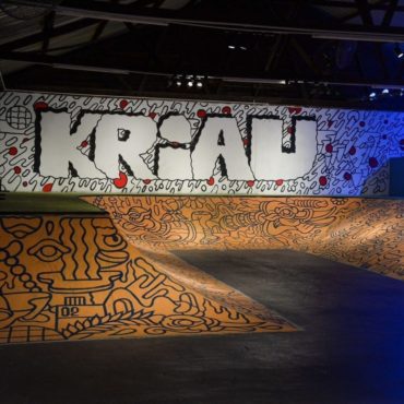 Kriau features FriTillDea’s iconic signature style adorning walls as murals, skateboard obstacles fully doodled and spray painted by hand, a bizarre skating installation as well as projection mapping; the artist’s foray in digital illustration —while maintaining Gombak as his main subject matter.
