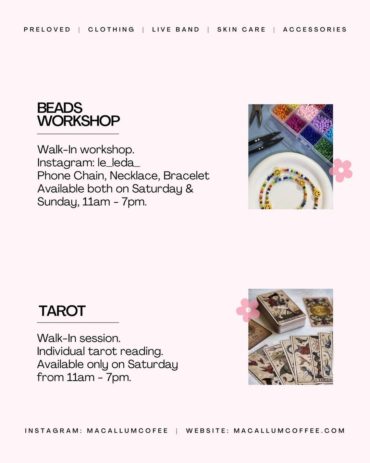 Plus, don’t miss our special Tarot Reading session on Saturday between 11 AM and 7 PM.