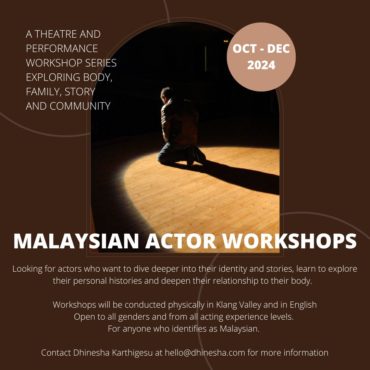 The Malaysian Actor Workshops are a theatre and performance workshop series from October to December 2024 focused on helping participants explore body, story, family and community through a workshop and learning experience.