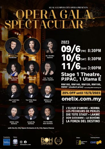 Kuala Lumpur City Opera proudly presents, “Opera Gala Spectacular” that showcases some of the best opera scenes from La Bohème, Don Giovanni, Lakme, Norma, Rusalka, Pearl Fisher, and many more.