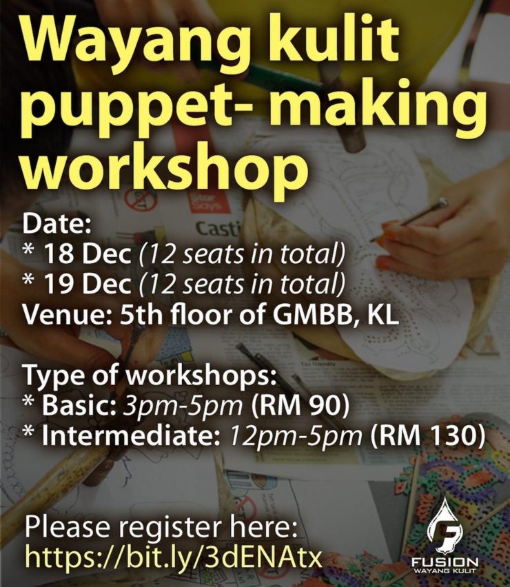 @Fusionwayangkulit will be conducting #shadowppupet / #wayangkulit puppet-making workshop for December 2021 Date: * 18 Dec (12 seats…