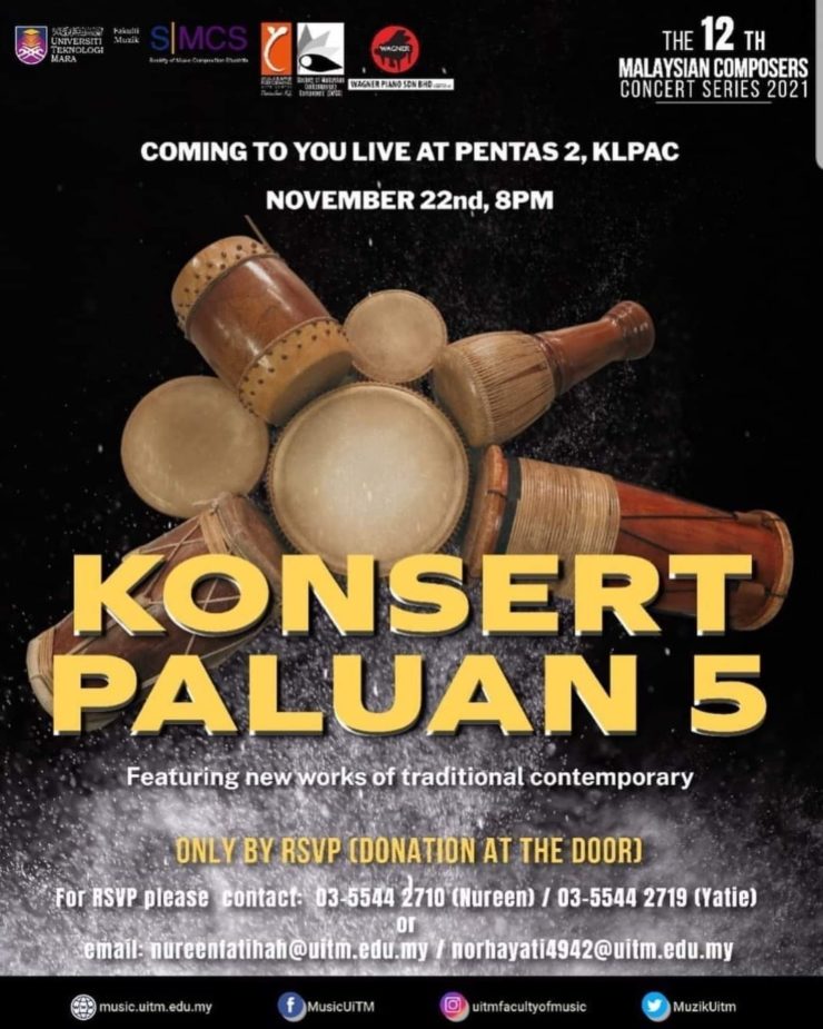 Saksikan Konsert Paluan Lima menampilkan Komposisi penciptaan lagu baharu dalam permainan bunyi-bunyian alat muzik tradisional…