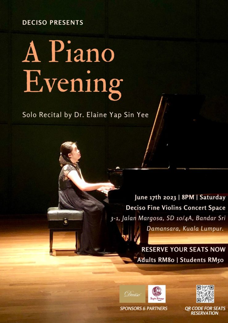 Come enjoy a piano evening by Dr. Elaine Yap Sin Yee on the piano, a…
