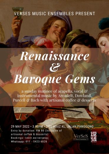 Don’t miss this installment of the “Renaissance & Baroque Gems” series, featuring a cappella, vocal & instrumental music by Arcadelt, Dowland, Purcell & Bach” at Dou Houz KL.