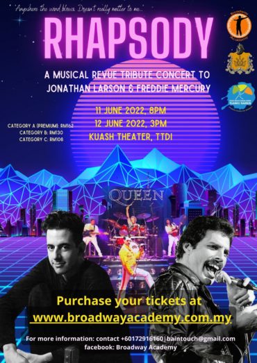 Broadway Academy & Broadway Theater Society Malaysia in collaboration with the Pusat Kreatif Kanak Kanak Tuanku Bainun pays tribute to the composer of RENT and Tick, Tick Boom, Jonathan Larson and the great Freddie Mercury (Queen) whom has brought us great songs that is loved by many till this day. Join us for this great tribute and enjoy a night of enjoyment!