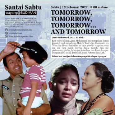 Hujung minggu ini Wayang Budiman membawakan esei video TOMORROW, TOMORROW, TOMORROW… AND TOMORROW (2021) oleh Amir Muhammad yang meneliti tema dan isu dalam 4 melodrama ‘Esok’ Jins Shamsudin era 70-an dan 80-an.