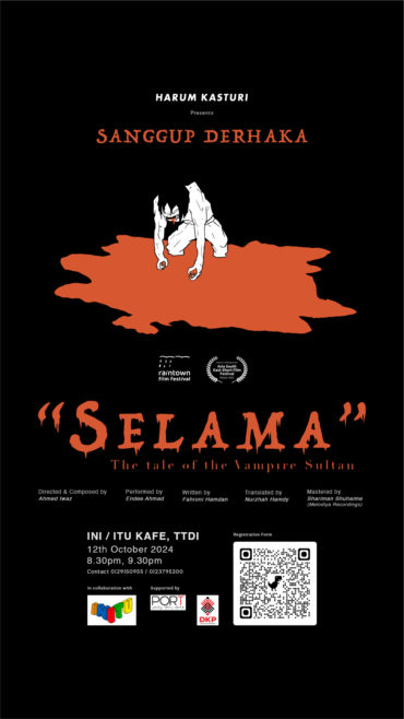 This is an inspired animation of Raja Bersiong folklore, that was part of the 2020 PORT Ipoh grant recipient. SELAMA also received a ‘Highest Commendation’ laurel by the South East Asia Short Film Festival. It also features a multi-disciplinary collaboration with voice actor Endee Ahmad, writer Fahroni Hamdan, translator Nurzhah Hamdy and mastering engineer Shariman Shuhaimie.