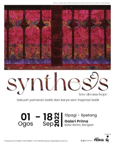 Galeri Prima is proud to announce that it will showcase hand painted batik fabrics by the Raja PermaisuriAgong alongside some 40 batik works of art by established and emerging artists in an exhibition called SYNTHESIS at its premises at Balai Berita in Bangsar from August 1 – September 18, 2022.