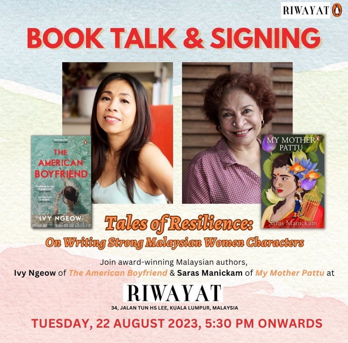 Home » Event » Tales Of Resilience: On Writing Strong Malaysian Women Character Tales Of Resilience: On Writing Strong Malaysian Women Character BOOK TALK & SIGNING Artist : Ivy Ngeow ( The American Boyfriend ) Saras Manickman ( My Mother Pattu ) Event Dates Venue Website For Enquiries
