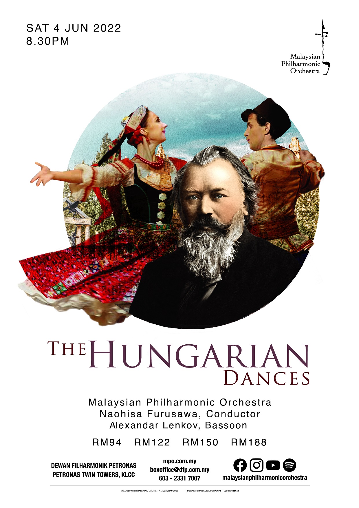 Through the violinist Reményi, Brahms discovered Hungarian music – captivating him with the driving rhythms and whirling melodies of gypsy travelling bands. Originally composed for piano duet, the Hungarian Dances were one of the greatest hits of his time. MPO principal Alexander Lenkov performs Weber’s lyrical and virtuosic Bassoon Concerto. An innovative orchestrator, Weber’s brilliant Oberon Overture is romantic grandeur at its best. Naohisa Furusawa conducts.