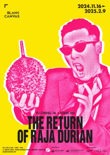 “The Return of Raja Durian” marks the homecoming of Penang-born durian tycoon, FAMEME (b. 1983). Having left the land of his birth to lead a globe-trotting existence, this fabulously colorful figure only returned to Malaysia in 2017. This exhibition presents a selection of objects and documents pertaining to his life and his creative transformation of the family durian business. It includes exclusive screenings of a new documentary by Taiwanese artist and filmmaker, Yu Cheng-Ta, that goes behind the scenes to detail the story of FAMEME’s personal struggles.