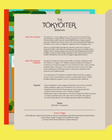 For more information on the design guidelines, eligibility, entry form and more, head on over to https://www.jfkl.org.my/events/the-tokyoiter-exhibition/