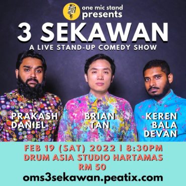 Opening things is TIGA SEKAWAN (THREE FRIENDS) with BRIAN TAN, KEREN BALA DEVAN and PRAKASH DANIEL, three of the most consistent and funniest comedians in Malaysia with 30 years of experience between them!